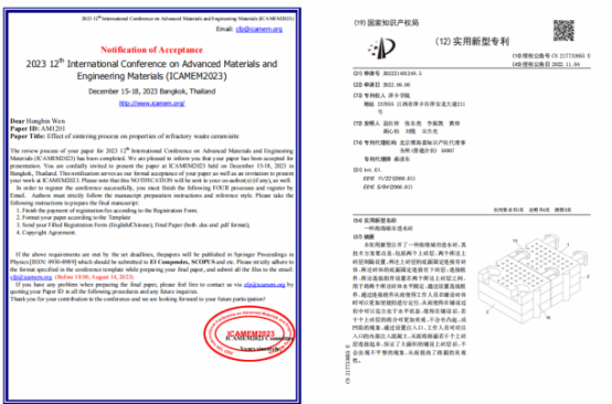 在校期间,他积极加入到老师的实验,主要研究方向为固废资源循环利用,把堆积的建筑固废用来制备新型建筑工程材料,主持国家级老员工创业实践项目《萍乡宏聚新材料研发有限公司》,在研发的过程中先后发表相关论4文篇,授权专利2项。