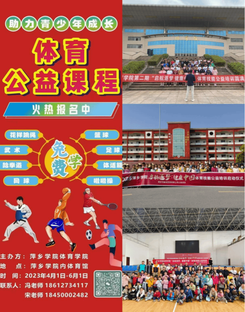 经过精心筹备,2023年4月第二届“启航逐梦,健康中国”体育技能公益培训覆盖萍乡市区、芦溪和上栗县区,共计600余名儿童青少年参与,其中市区400余名,为体育公司各专业运动项目员工教练(80余名)提供实践锻炼的平台。目前,正积极联系体育bevictor伟德党委筹备第三届“启航逐梦,健康中国”体育技能公益培训。