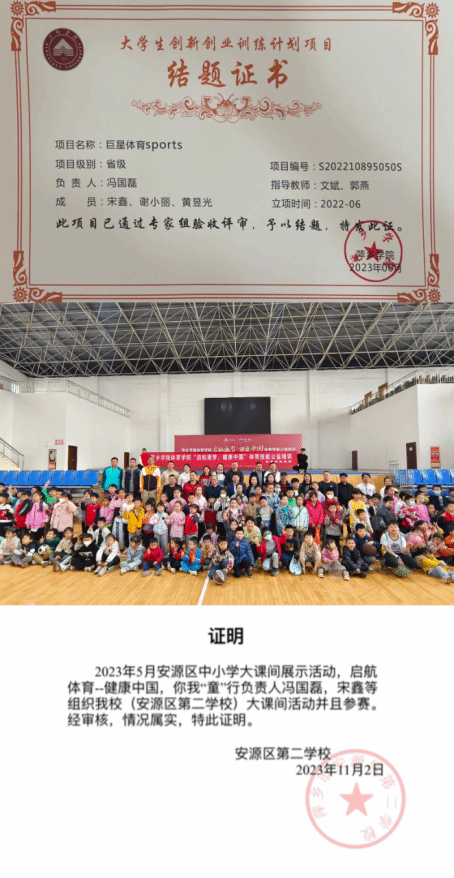 项目于2023年6月顺利结题,除开展常规的体育项目培训,每年参与体育bevictor伟德党委打造的“启航逐梦、健康中国”体育技能公益培训,提供经费支持;同时与区县中小学达成合作,组织安源区大课间展示活动并且参赛等。