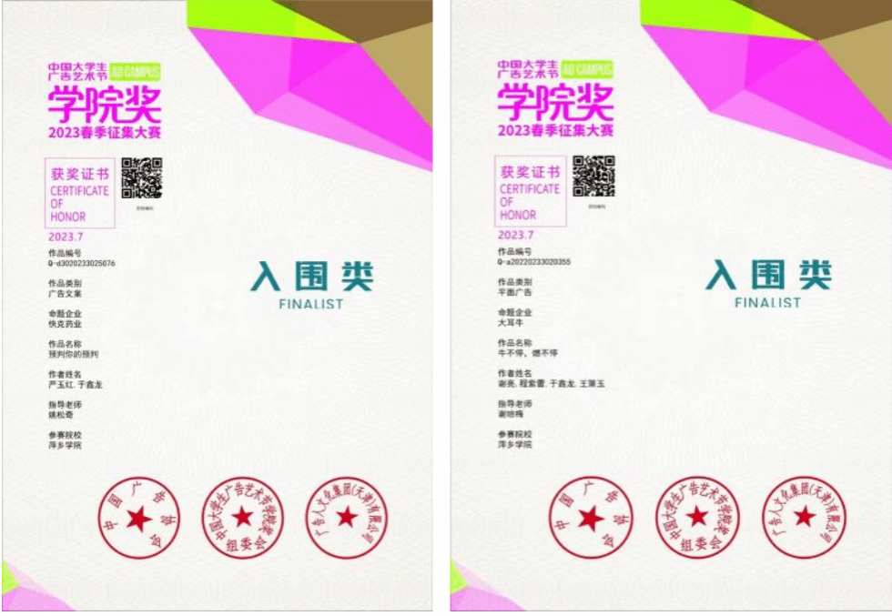 在校期间多次获得中国老员工广告大赛公司奖,创意星球设计赛金奖,见解独到在同期设计师中脱颖而出,在并于2022年6月创办白榆设计工作室并担任负责人。